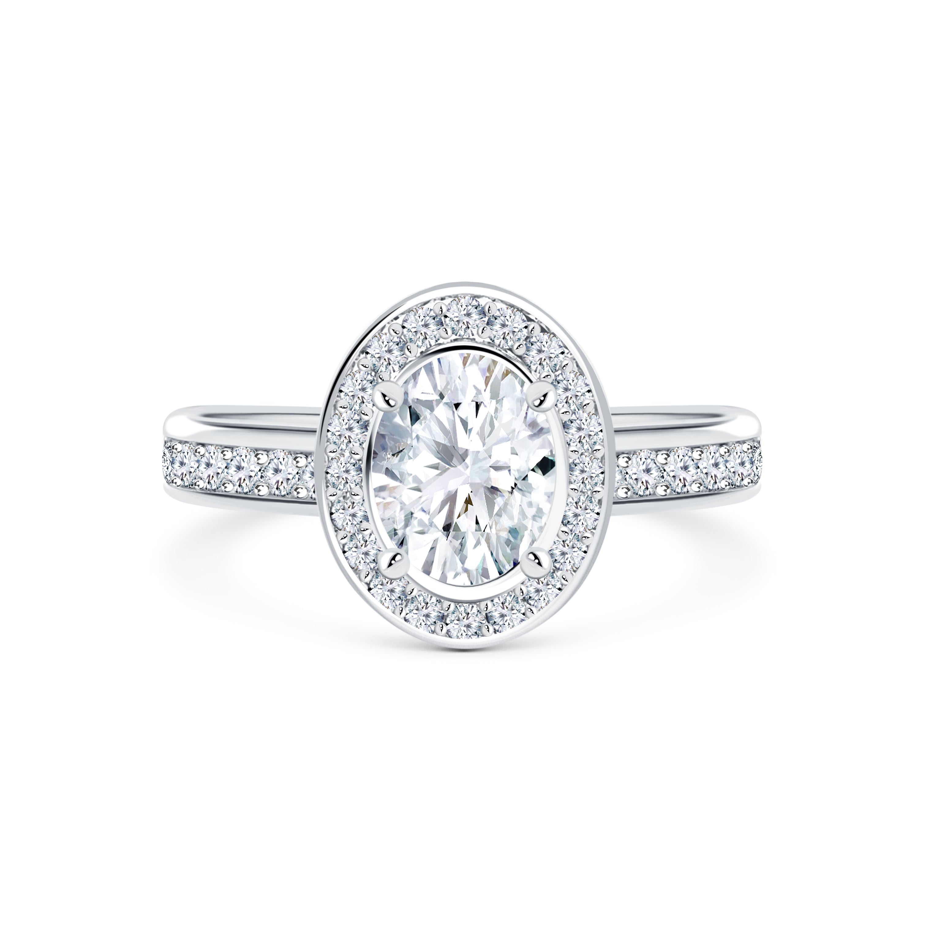 The Aurora Engagement Ring is a celestial masterpiece, radiating timeless elegance and sophistication. Crafted in opulent 18k white gold, this exquisite design features a captivating oval-cut centre diamond, securely embraced by a classic 4-claw setting that highlights its brilliance and symbolises everlasting love.
