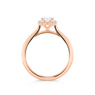 The round-cut centre diamond is celebrated for its unmatched brilliance, while the halo enhances its sparkle, creating a dazzling and elegant effect. This classic design blends simplicity and sophistication, making it a perfect choice for those who value timeless beauty.