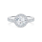 The Gemma Engagement Ring is a radiant celebration of elegance and everlasting love. Crafted in luxurious 18k white gold, this exquisite ring features a stunning round brilliant-cut diamond at its centre, cradled securely in a classic 4-claw setting and surrounded by a dazzling diamond halo.