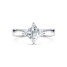 The Aria Engagement Ring is a stunning blend of modern elegance and timeless beauty, crafted in luxurious 18k white gold. Featuring a unique tilted princess-cut centre diamond, securely set in a graceful 4-claw cathedral setting, the Aria exudes sophistication with a contemporary twist.