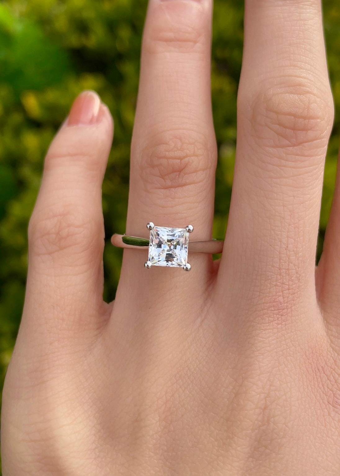 The Giorgia Engagement Ring is a captivating fusion of modern brilliance and timeless elegance. Featuring a striking princess-cut diamond in a classic 4-claw setting, this design is perfect for celebrating your unique love story.