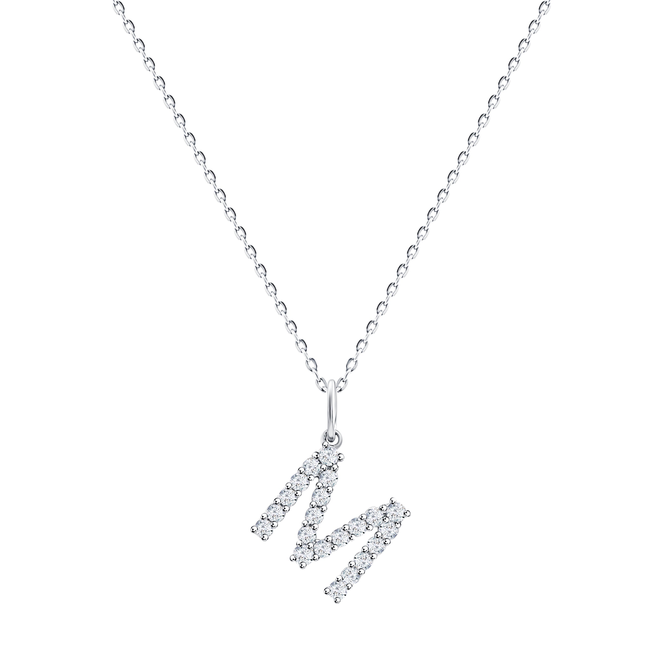 The Letter 'M' Diamond Necklace is a refined and personalised piece, crafted in 14ct white gold. Featuring a delicate, diamond-studded initial 'M' pendant, this necklace is the perfect way to showcase your unique style or celebrate someone special. The pendant is set with lab-grown diamonds, offering an ethical and sustainable choice, while still delivering remarkable brilliance.