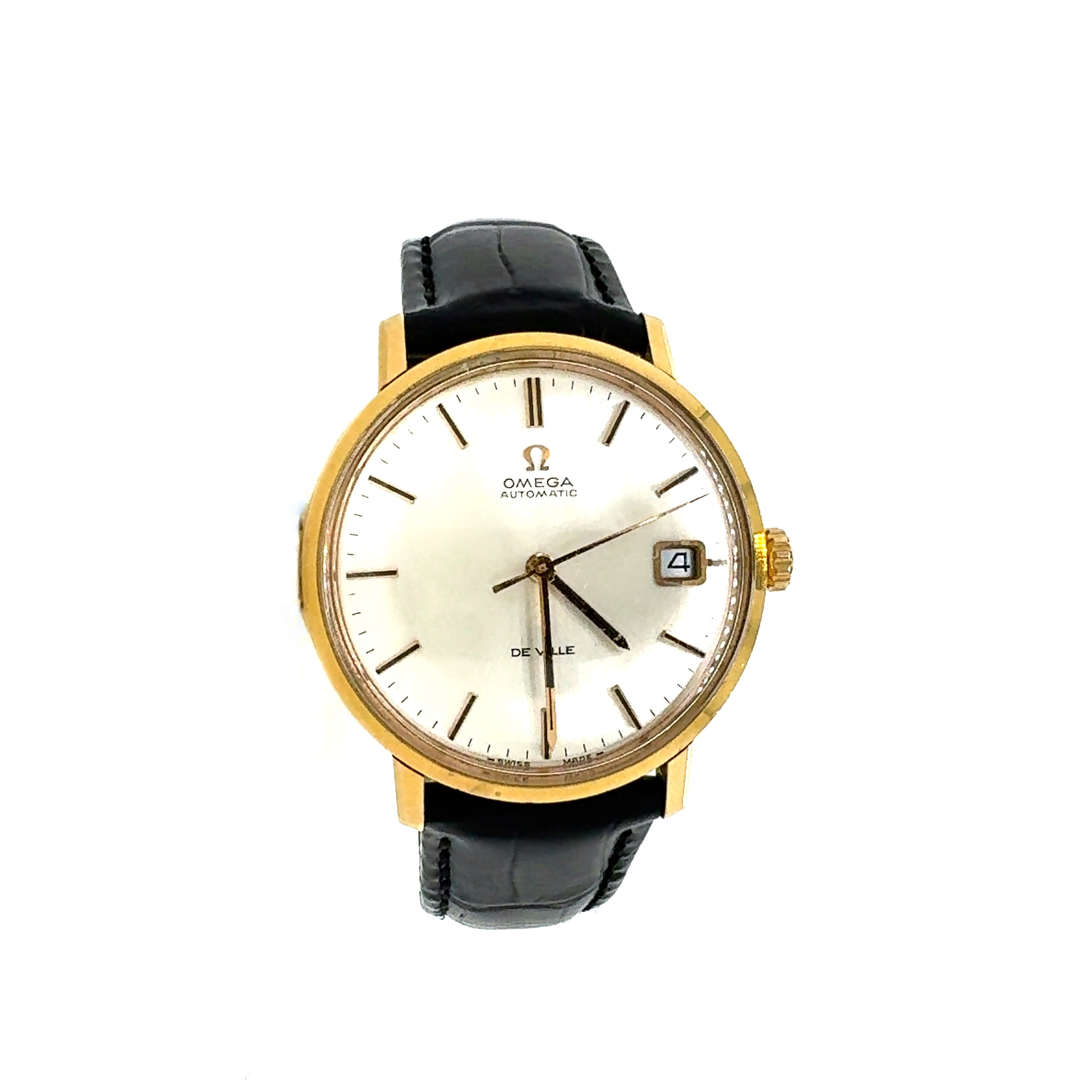 1960's Vintage Men's Omega Seamaster De Ville Watch in 18K Gold Case with Leather Band