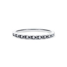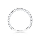 The Arabella ring features prong-set diamonds in an intricate mill grain art-deco style. The detailed design brings a touch of vintage glamour to a modern wedding band, offering timeless elegance with a sophisticated, sparkling finish.
