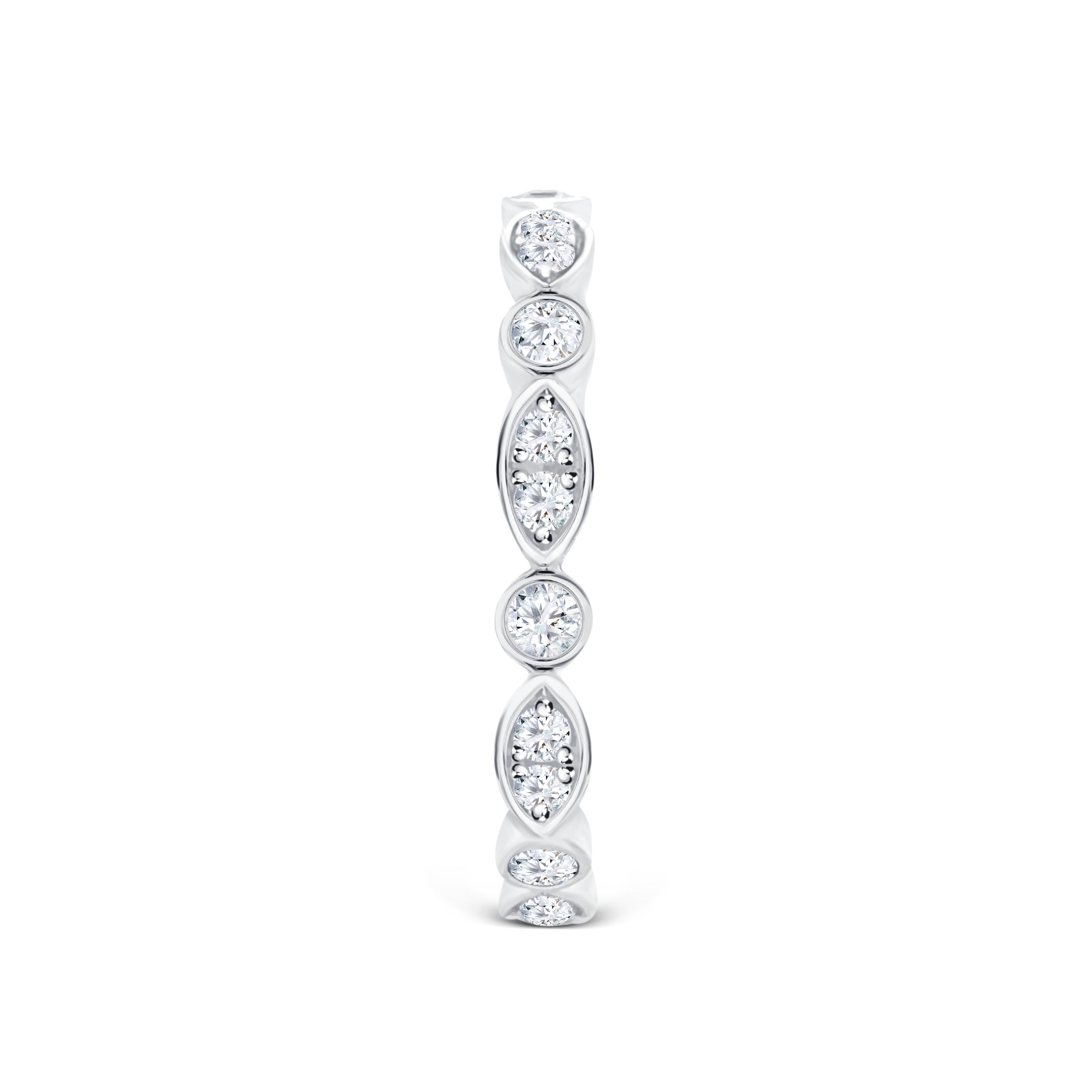 The Felicity wedding band in 18ct white gold features a beautiful fancy bead-set design, showcasing a total diamond weight of 0.40ct. With its refined elegance, this ring is a timeless symbol of your love and commitment.