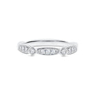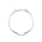The Denise ring features grain-set diamonds with two square-set round brilliant diamonds accenting the design. This elegant, contemporary style adds a touch of luxury and sparkle, making it a perfect symbol of your unique love and commitment.