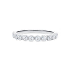 The Luna ring is a modern half eternity wedding band with 13 round brilliant-cut diamonds set in sleek bezel settings. The simple, round band blends timeless elegance with a contemporary touch, symbolising your unique love and commitment.
